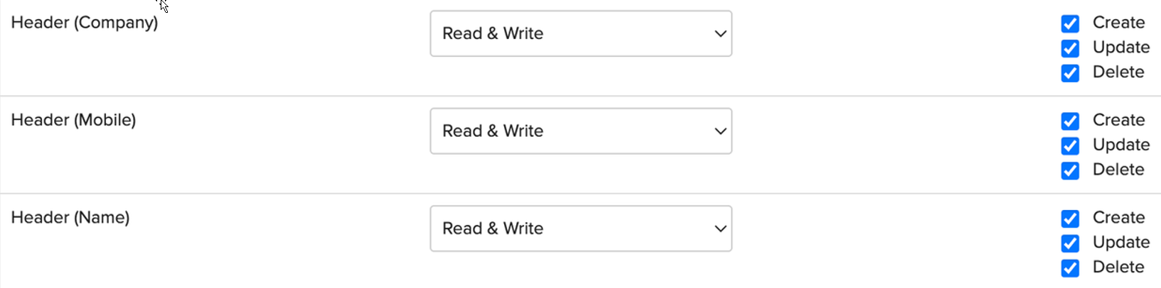 Note: Admins can define roles with the privilege to add/remove header fields. Users can only remove header fields if they have the appropriate role permission. If a user does not have the appropriate permission, they cannot remove the header.
