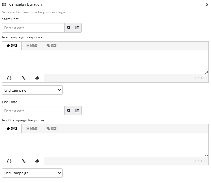 Use the Campaign Duration component to set a start date and end date for your campaign. You can send messages to subscribers before the campaign begins and after it ends.