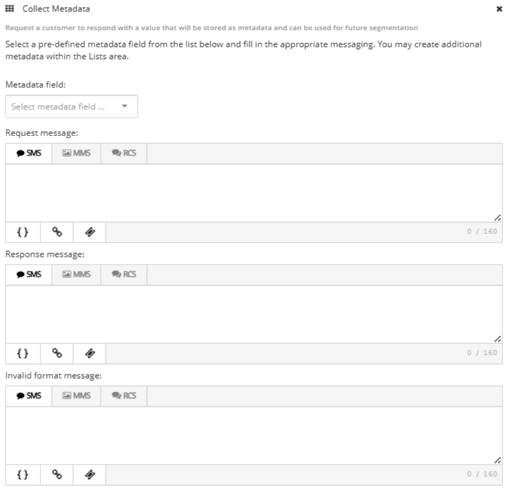 Enter the Request message, which invites the subscriber to respond with the value that will be added to the selected metadata field in their profile.